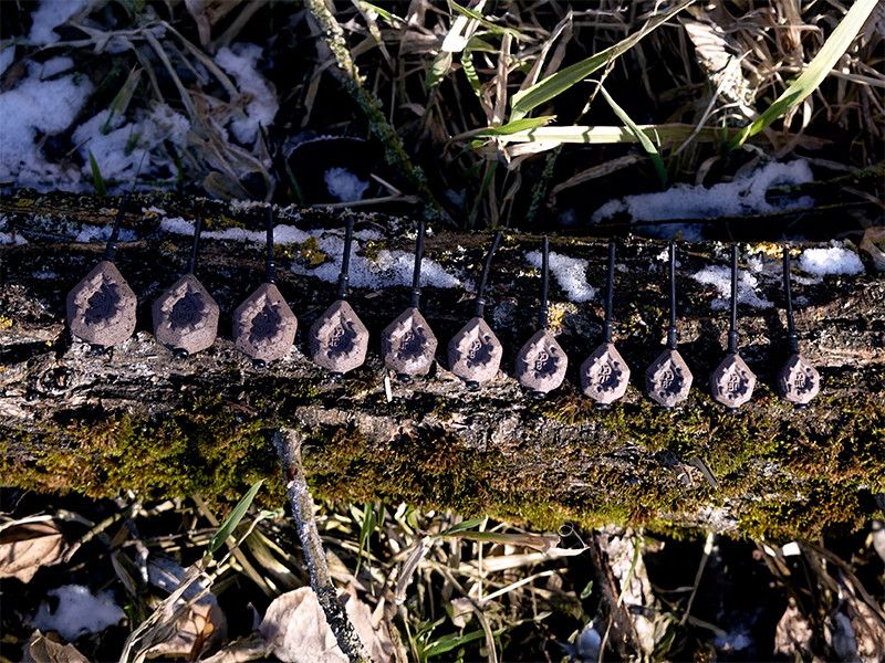 La surface du plomb est protégée par une couche d'une couleur marron avec des taches noires, qui camoufle parfaitement sa présence sur le fond. Il a une forme spéciale qui ne roule pas sur le fond.