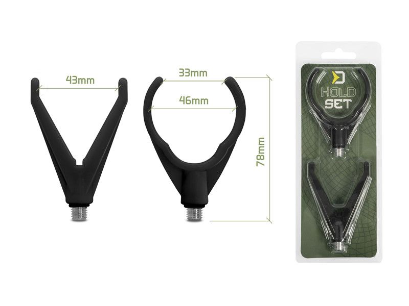 Un lot de supports pour la canne contient un support avant et arrière avec un filetage universel pour l'utiliser avec n'importe quel pique ou support. Ils sont convenables notamment pour la pêche au feeder, mais aussi pour la pêche au coup ou au posé.