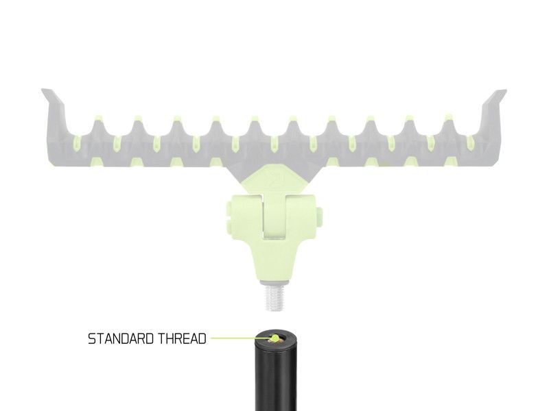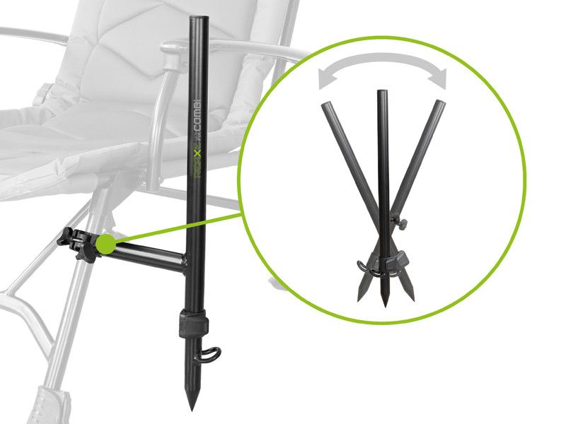 Un support pratique pour des cannes feeder, conçu pour les différents types de buzz bars de la série REAXE. Il est basé sur une construction durable en aluminium en forme de « T » avec des clips plastiques et un filetage polyvalent compatible avec la plupart des buzz bars disponibles sur le marché. Le support est convenable pour un terrain inégal grâce au pied télescopique. Il est possible de le planter au sol pour une meilleure stabilité. Le pied télescopique peut atteindre jusqu'à 23 cm. Il a aussi un clip pour le sécuriser et un cordon solide pour ne pas le perdre. Un clip plastique avec un écrou de sécurité est utilisé pour la fixation à la structure des fauteuils standards et il est tournant pour l'utiliser dans n'importe quel angle. UniFIX COMBI est disponible en couleur noire avec une inscription REAXE, le nom de la série feeder.